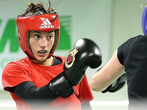 Insgesamt 1150 Quadratmeter Fläche nutzen die Faustkämpferinnen und Faustkämpfer am neuen Platz, wo im hellen Licht viel Schweiß fließt. Wer sich wie Selin Korkmaz (Foto oben), Cem Korkmaz und Sahan Aybay diesem Sport verschreibt, der weiß, dass nicht eben wenig verlangt wird.