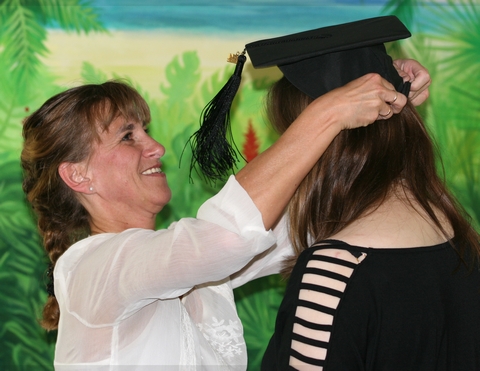 Wieder flogen die Doktorhüte durch die Luft: Gemäß der eigens kreierten spaßigen Tradition beschenkte Internatsleiterin Ruth Funk am 22. Juni 2014 die Abiturientinnen und Abiturienten des Sportinternats mit den schwarzen Kappen. Auch wenn es mit den Promotionsfeiern noch dauern dürfte, feierten neun Athleten mit Schuljahresende einen wichtigen Abschluss. Und auch ihren Abschied aus der Einrichtung.